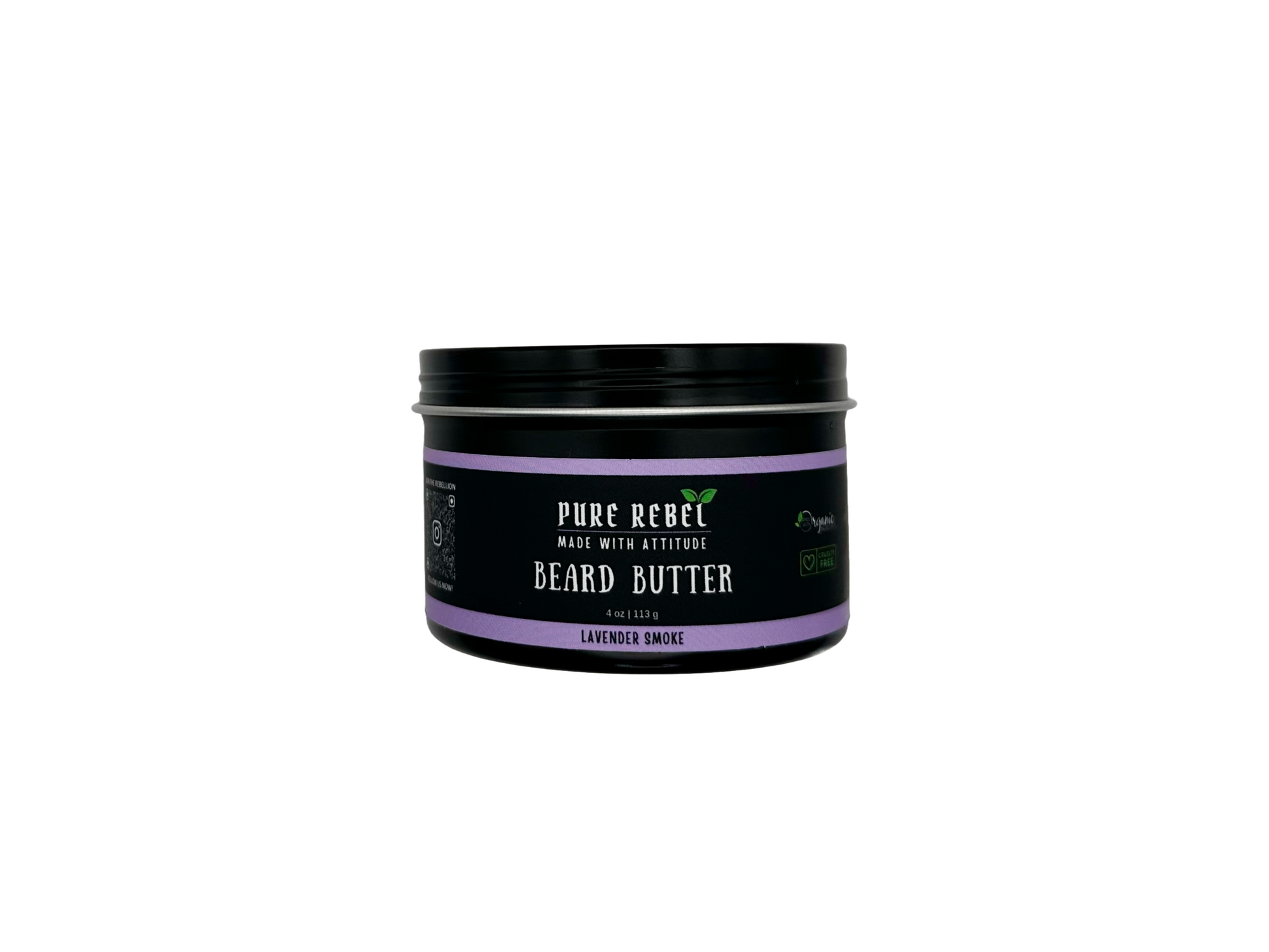 The Pure Rebel Lavender Smoke Beard Butter is crafted with a blend of natural ingredients to deeply nourish and tame facial hair. This luxurious formula combines the calming scent of lavender with the bold, smoky notes of leather, warm vanilla, and earthy cedar, creating a fragrance that embodies rugged sophistication. Infused with natural moisturizers like cocoa butter and beeswax, it softens coarse hairs while providing light hold and style. Perfect for those seeking an alcohol-free, chemical-free, naturally nourishing beard solution that blends rebellion with refinement.
